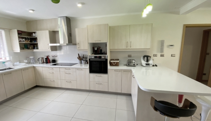 La casa es de un estilo moderno y funcional, con una superficie construida de 321 m2, con una terraza techada de 112 m2 que da al jardín, 6 dormitorios (principal en suite) y 5 baños. La construcción tiene solamente 5 años y se encuentra en excelente estado de mantención, destacándose por una altísima calidad constructiva, uso de excelentes materiales, eficiencia térmica, y terminaciones de primer nivel.